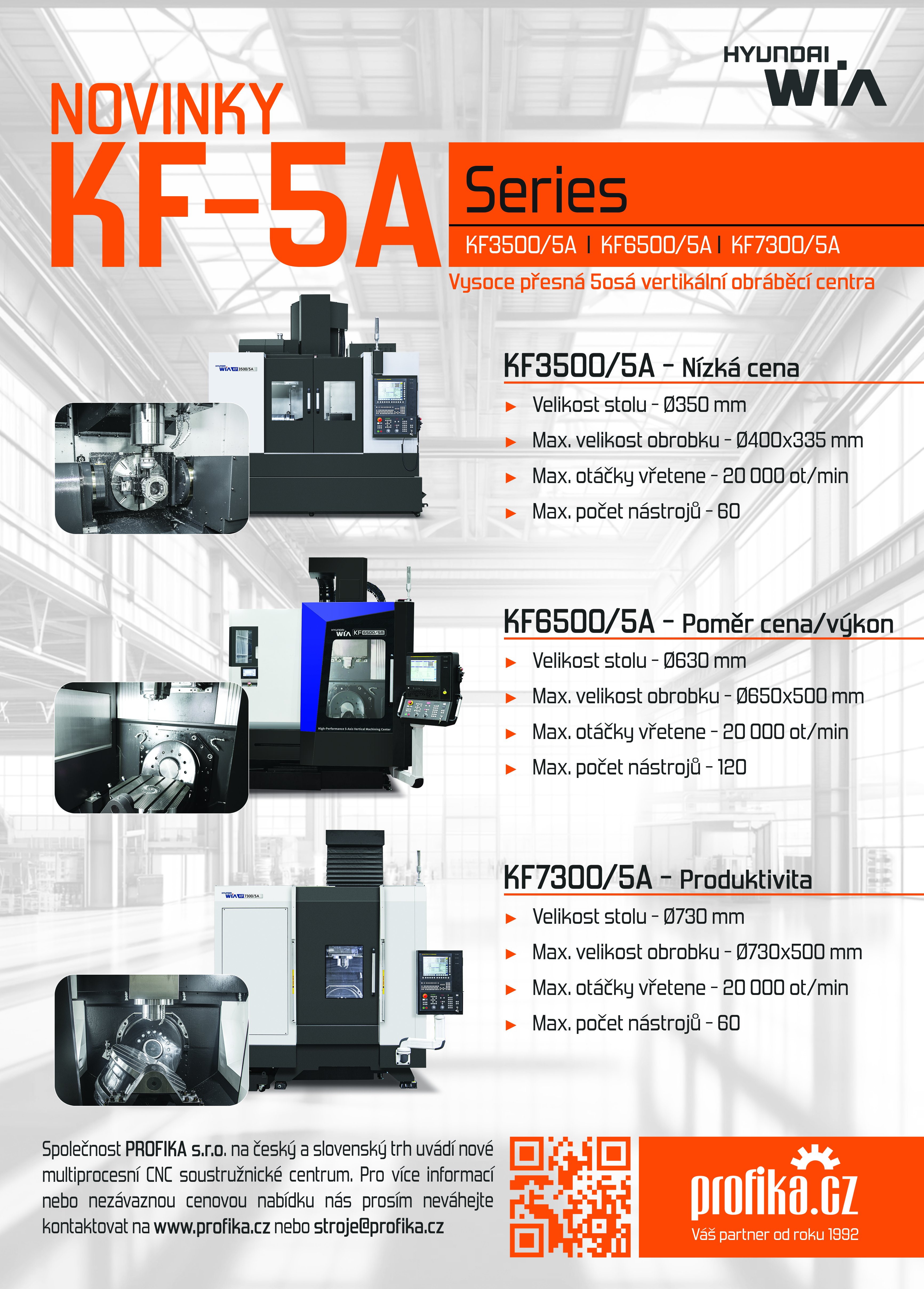 Stroje HYUNDAI WIA KF3500/5A, KF6500/5A a KF7300/5A vychádzajú z dlhodobo overenej konštrukčnej filozofie výrobcu HYUNDAI WIA a predstavuje efektívny nástroj pre zvýšenie produktivity i kvality výroby.