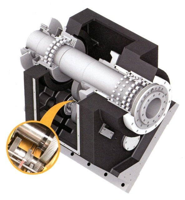 • Súčasťou vretena je trojstupňová automatická prevodovka, ktorá zaisťuje optimálny výkon v celom rozsahu otáčok vretena. Tento pokročilý systém umožňuje stroju efektívne pracovať v akýchkoľvek rezných podmienkach, od hrubovania s veľkým úberom materiálu až po presné dokončovacie operácie.