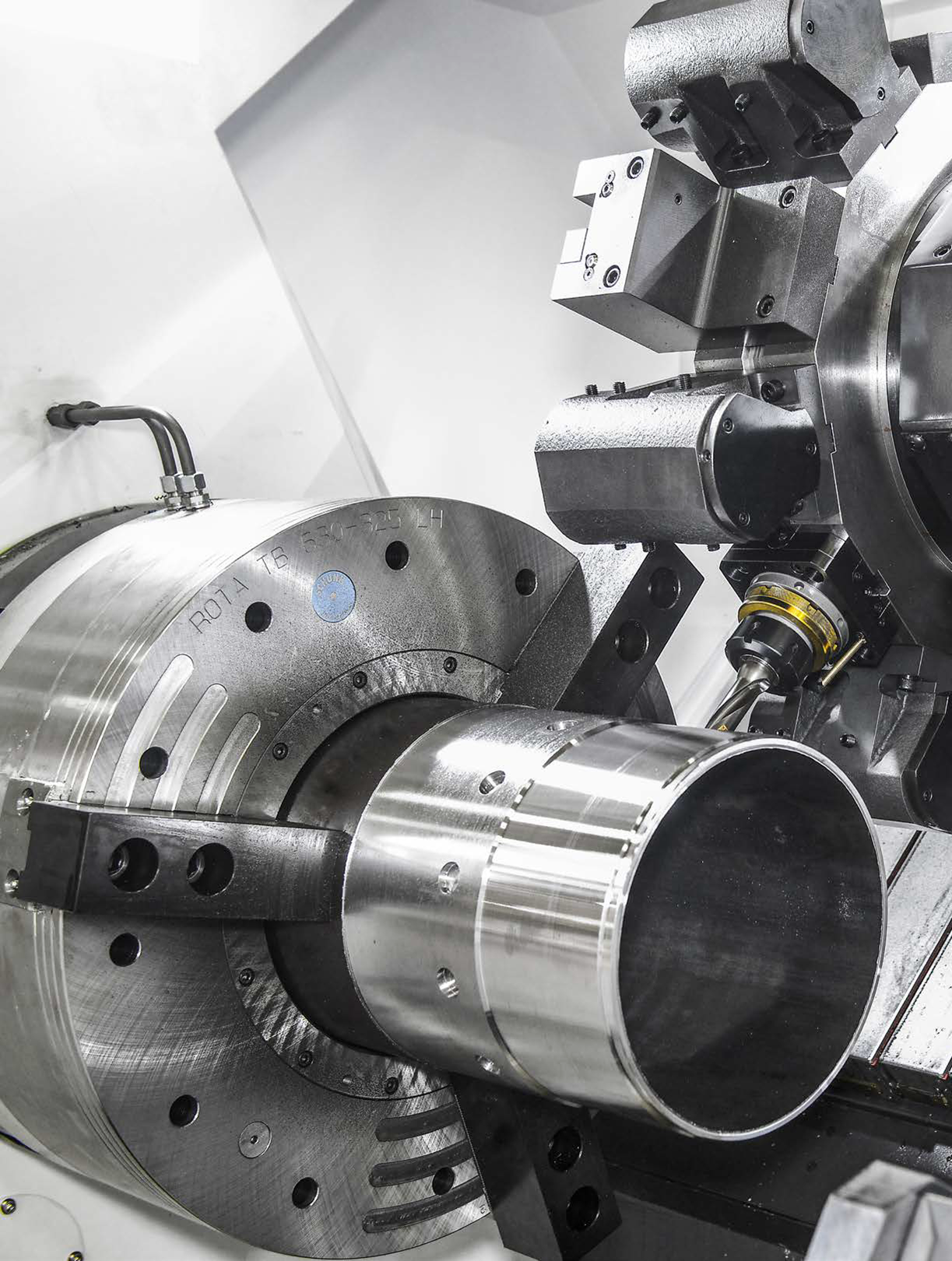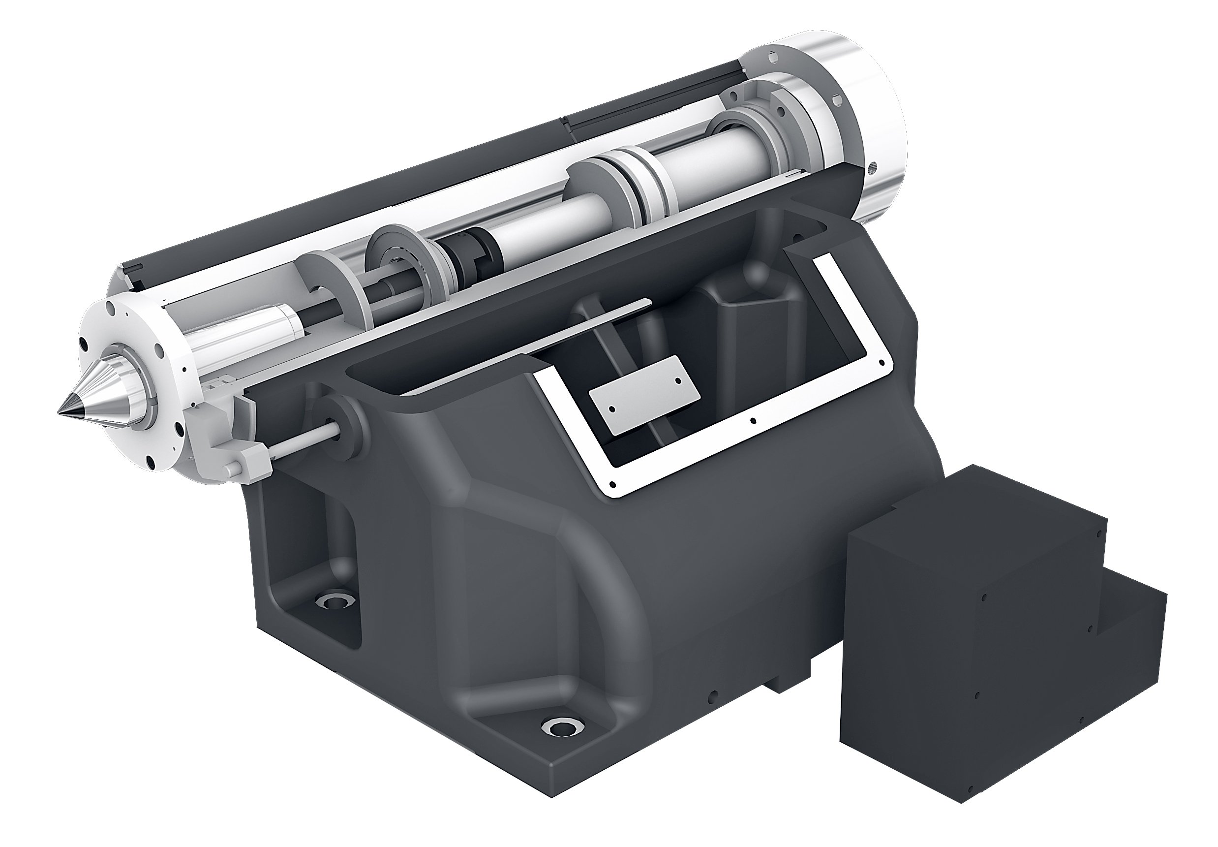 • vstavaná konštrukcia pinoly umožňuje veľmi tuhé a spoľahlivé podoprenie aj veľmi ťažkých obrobkov v osi, čo je základom pre dosiahnutie vysokej rozmerovej presnosti a kvality povrchu.