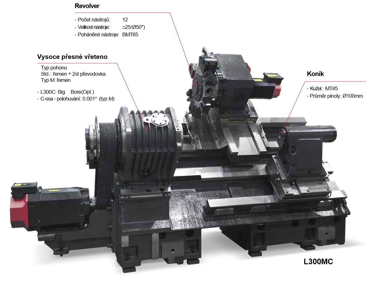 - Najväčší BMT (12-polohový) revolver vo veľkostnej triede strojov L300 série umožňuje jednoduché a presné polohovanie. Systém držiakov nástrojov BMT65 ponúka veľmi robustné a presné upnutie nástroja, čo minimalizuje vibrácie a zaisťuje vysokú presnosť obrábania, a to aj pri veľkom zaťažení. Vysoký výkon (5,5/3,7kW) a krútiaci moment (35/23,5N.m) poháňaných nástrojov umožňuje vykonávať plnohodnotné frézovacie, vŕtacie a závitovacie operácie s vysokou efektivitou.