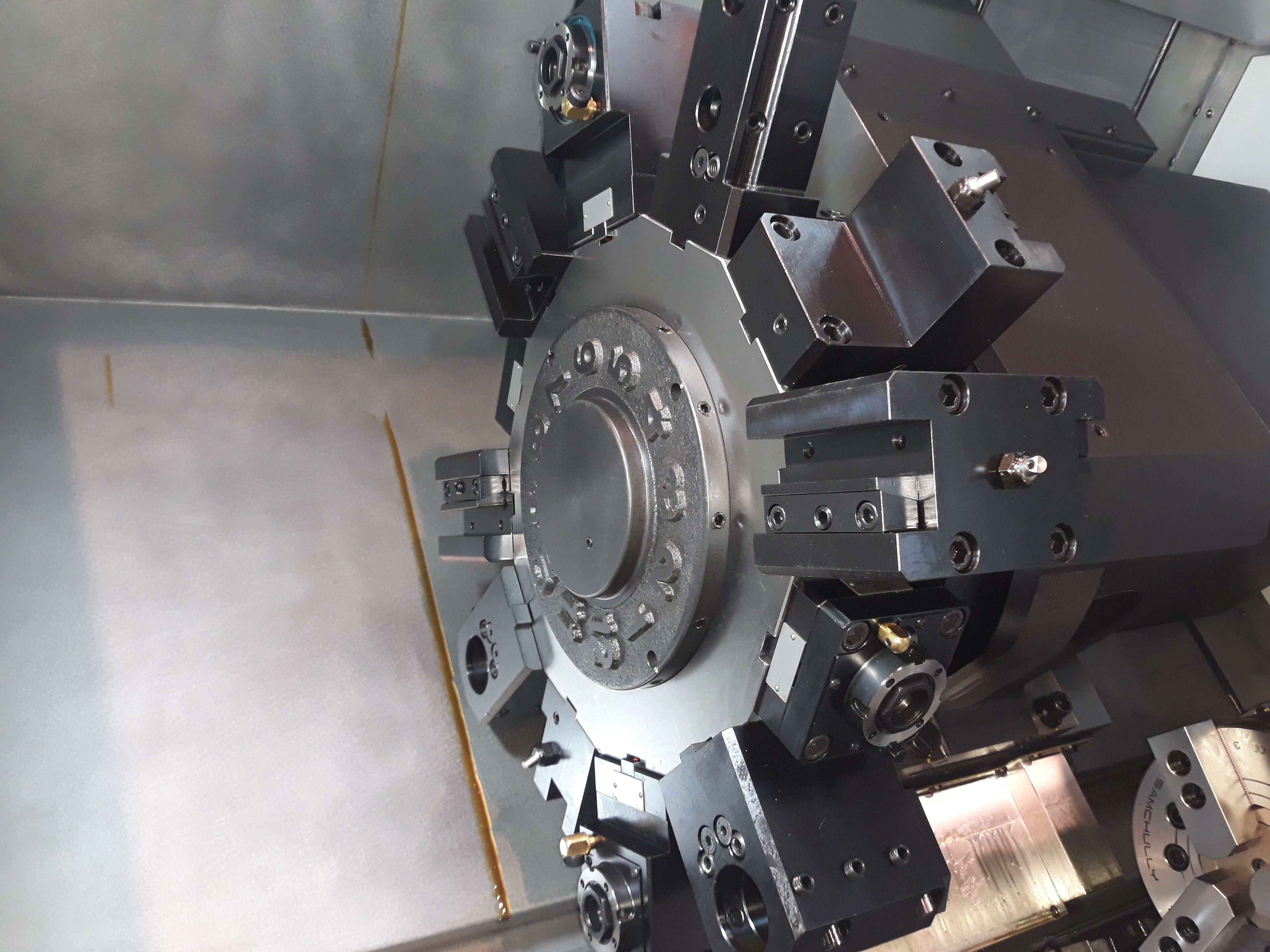 - Stroj tak bez problémov zvládne obrábať poháňanými nástrojmi aj tvrdšie materiály a vykonávať operácie, ktoré by inak vyžadovali samostatné frézovacie centrum.