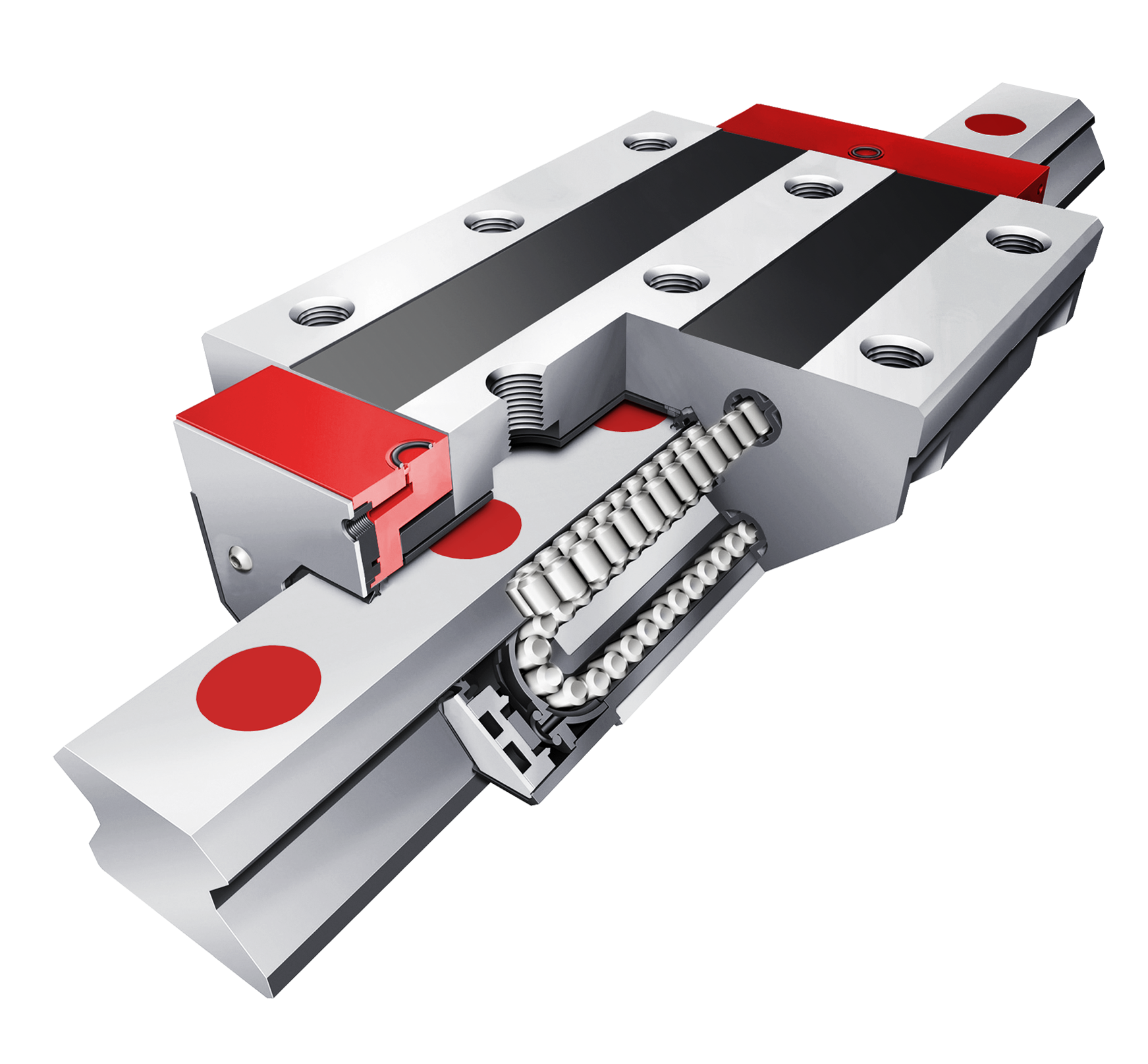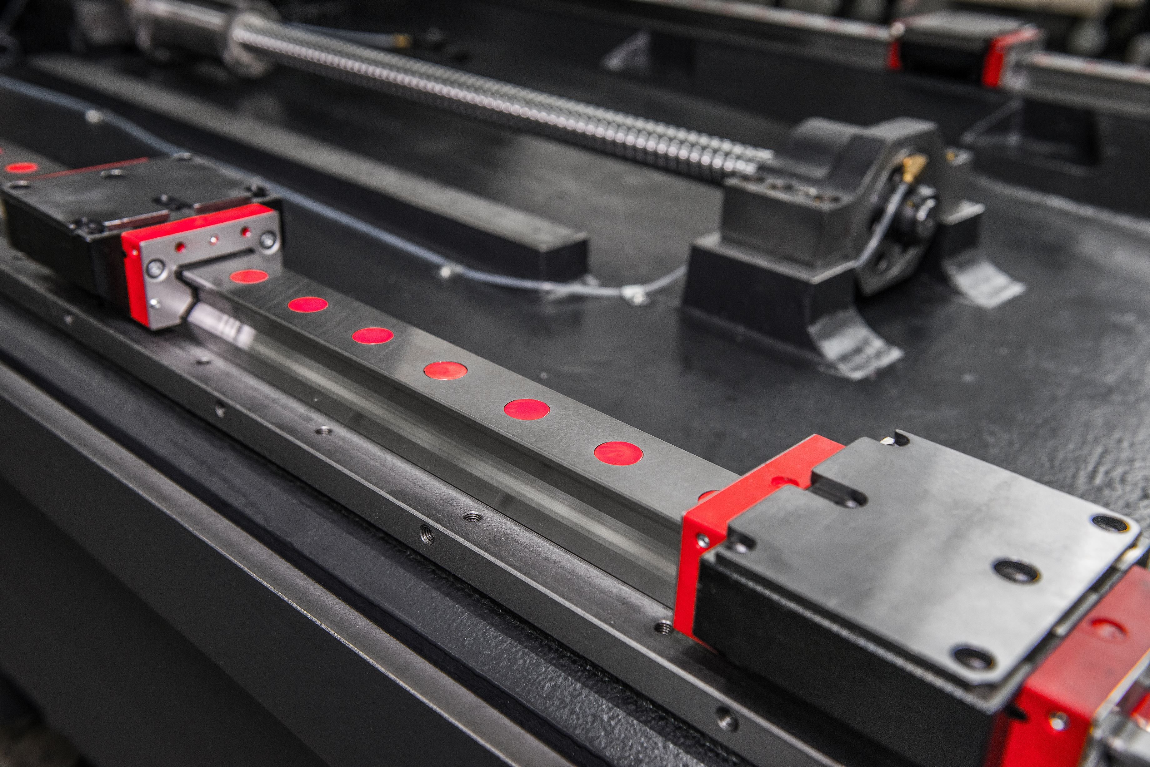 - Zatiaľ čo väčšina bežných strojov využíva lineárne guličkové vedenie, model KF7600L stavia na valčekové segmenty, namiesto guličiek. Valčeky majú s koľajnicou lineárny (plošný) kontakt, nie iba bodový. To radikálne mení vlastnosti stroja v záťaži, udržuje vysokú presnosť pri obrábaní a zvyšuje životnosť vedenia.