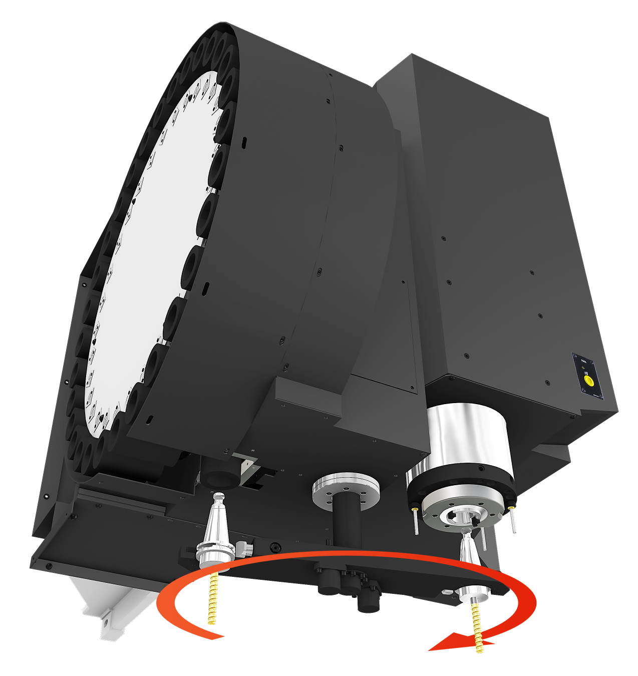 - Vreteno je štandardne vybavené systémom chladenia olejom. Tento aktívny okruh udržuje konštantnú teplotu vretena aj pri dlhotrvajúcich operáciách vo vysokých otáčkach a tým eliminuje tepelnú dilatáciu a zaručuje rozmerovú presnosť obrobkov.