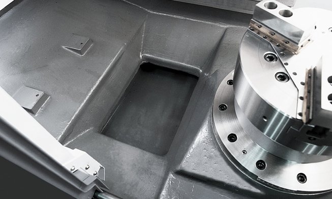 - Optimalizovaný tvar lôžka a vnútorného priestoru podporuje efektívny odvod triesok a chladiacej kvapaliny, čím sa znižujú tepelné deformácie.