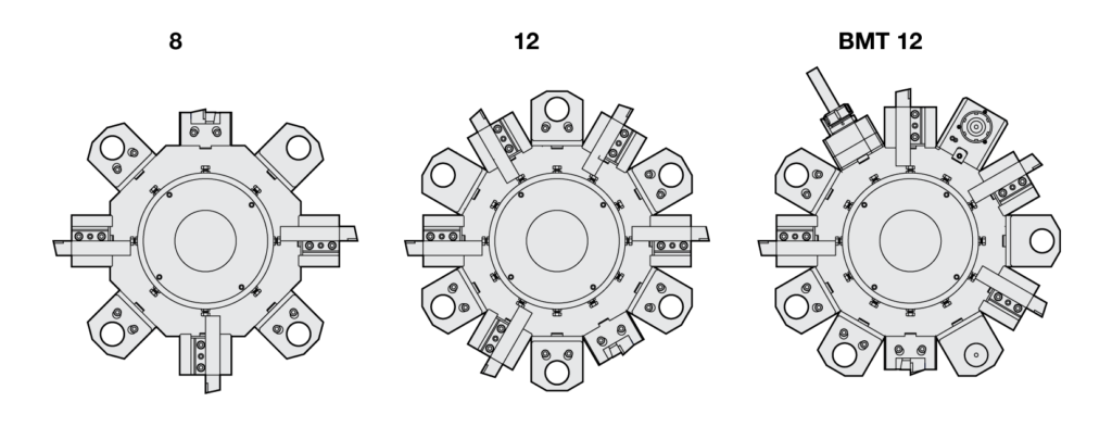 Možnosť voľby upínania podľa konkrétnej aplikácie, vrátane veľkopriemerových skľučovadiel pre ťažké obrobky.