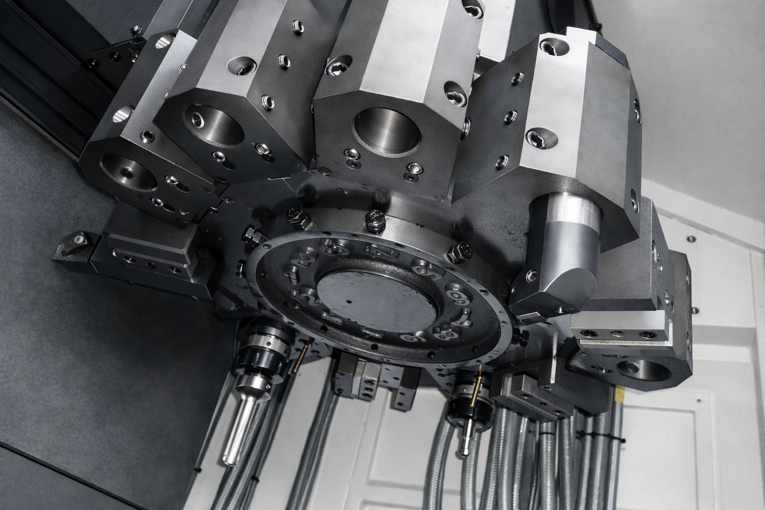 Vysoká presnosť polohovania osi C (0,001°) umožňujúca presné frézovacie, vŕtacie a polohovacie operácie s poháňanými nástrojmi.