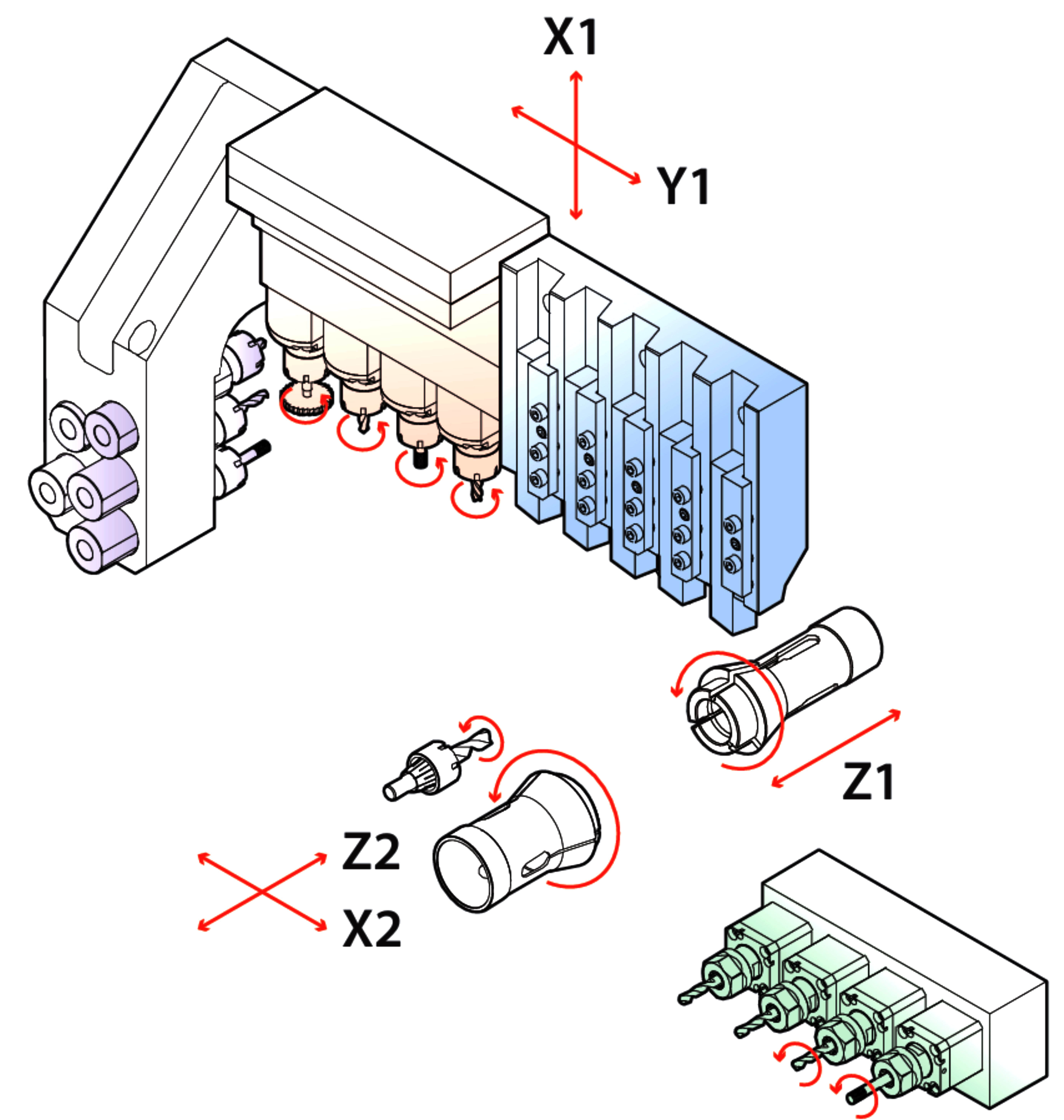 | Počet priečnych poháňaných nástrojov | 4 (ER20) (ks) |